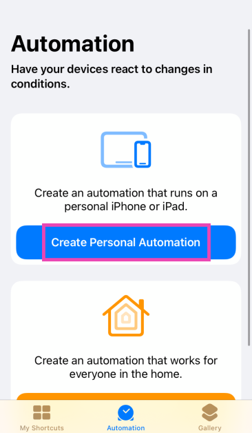Étape 2 :Appuyez surCréer une automatisation personnelle.