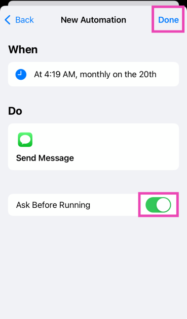 L'inconvénient de l'utilisation de l'application Raccourcis pour envoyer un texte programmé est qu'elle répète l'action chaque mois. Si vous ne pensez pas à supprimer l’automatisation après l’envoi du message, cela conduira à des destinataires très confus. Heureusement, certaines applications tierces proposent une solution à ce problème.