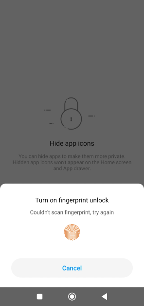 Étape 7 :Pour afficher les applications cachées sur votre téléphone Xiaomi,faites glisser deux doigts dans des directions opposéessur l'écran d'accueil. Il vous sera demandé votre empreinte digitale ou le mot de passe que vous avez défini pour le verrouillage de l'application.
