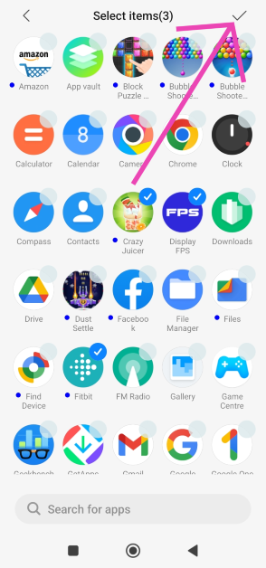 Étape 7 :Sélectionnez les applications que vous souhaitez masquer et appuyez sur le boutonicône de cochedans le coin supérieur droit de l'écran.