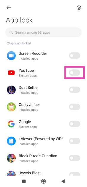 Étape 4 :Allumez leinterrupteur à basculeà côté de l'application que vous souhaitez verrouiller.