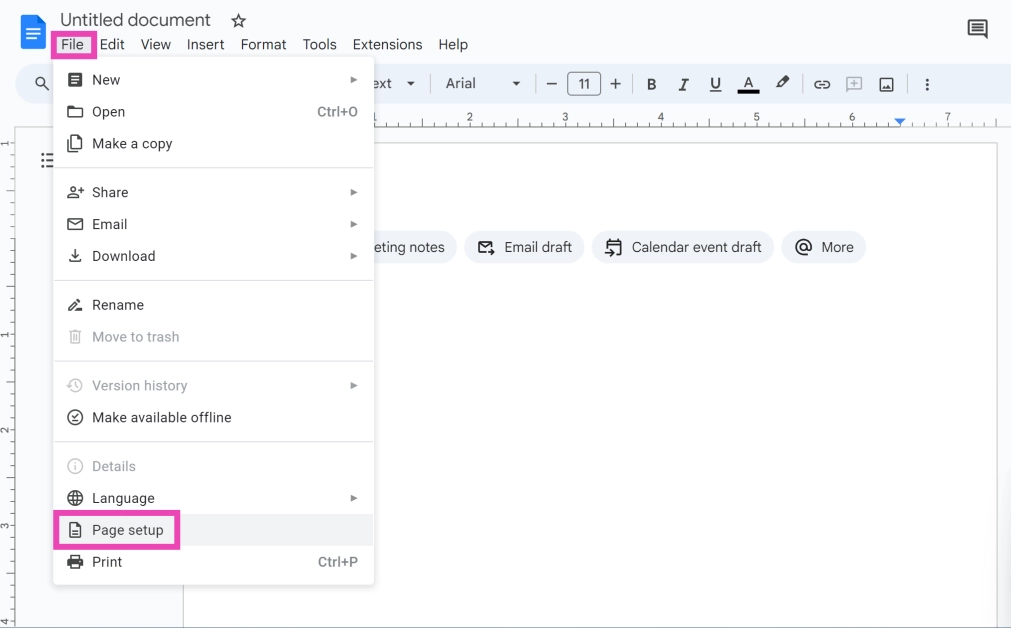 Modifier la taille de la page sur Google Docs avant l'impression
