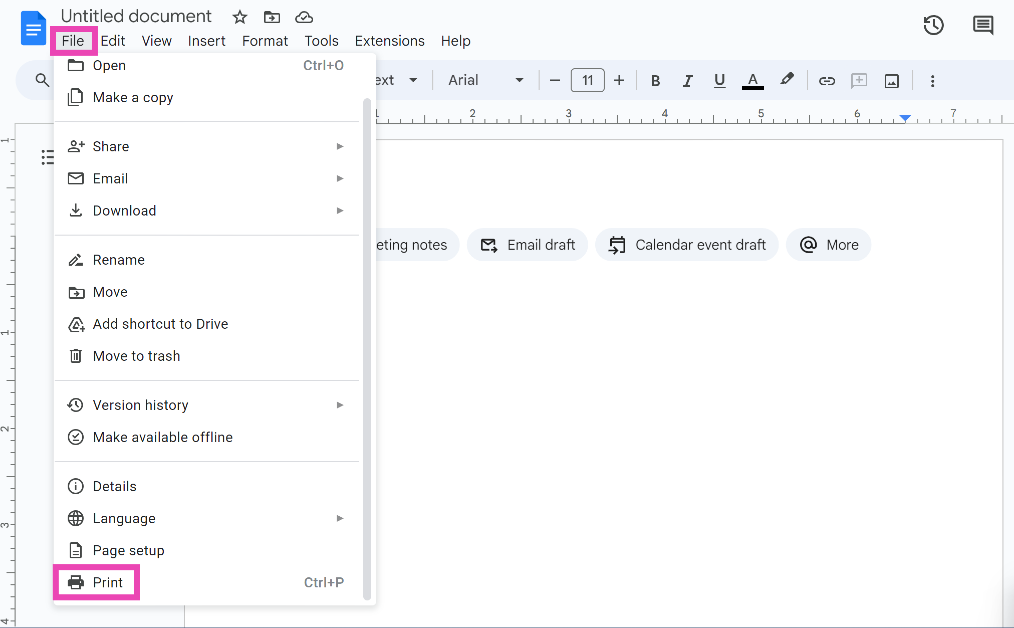 Étape 2 :Cliquez surDéposeret sélectionnezImprimer.