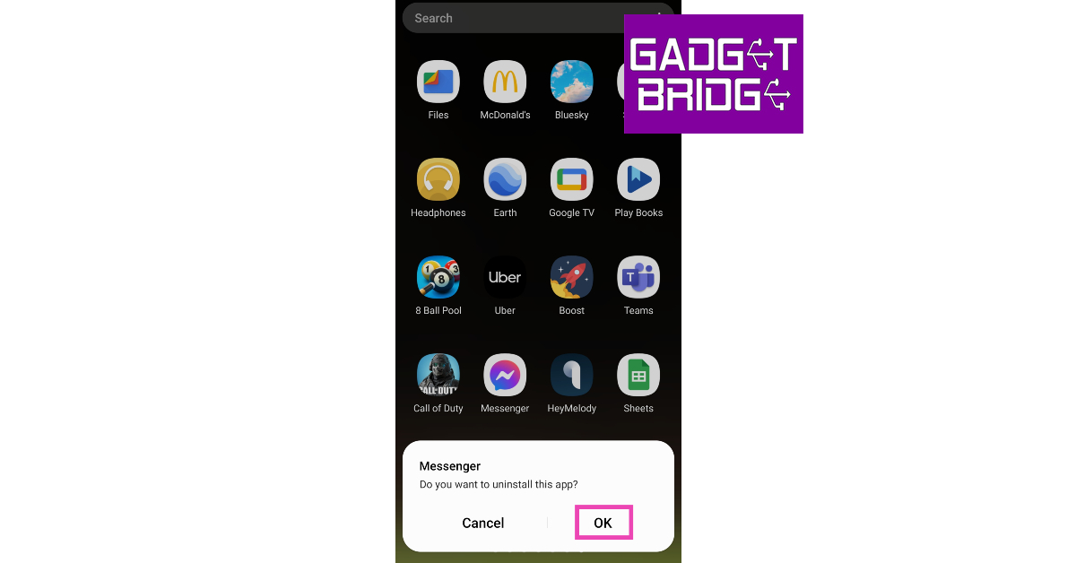 Recherchez Messenger dans Google Play Store et cliquez sur « Désinstaller » sur la page de l'application.