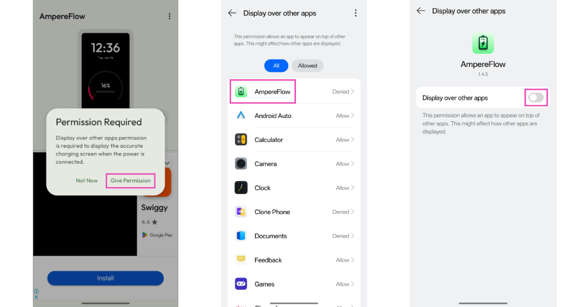 Étape 3 :Autorisez AmpereFlow àafficher sur d'autres applications.