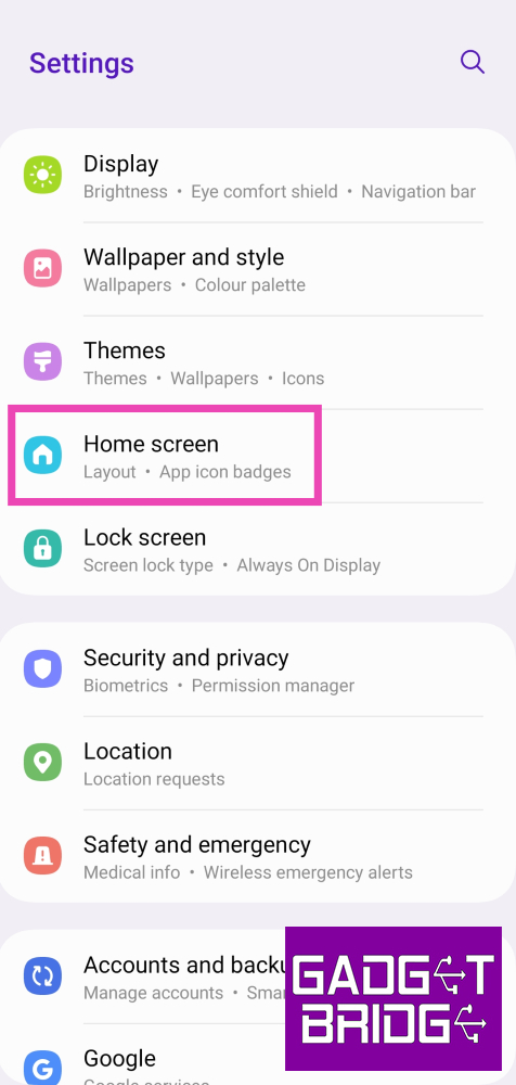 Étape 1 :Aller àParamètreset sélectionnezÉcran d'accueil.