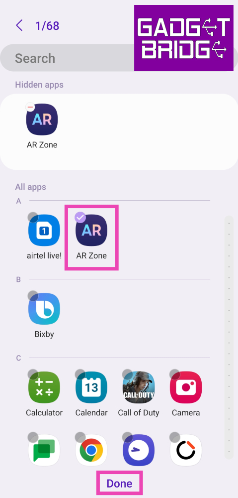 Étape 3 :Sélectionnez l'application que vous souhaitez masquer et appuyez surFait.
