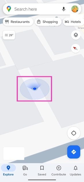 Étape 2 :Frappez leIcône plus récenteet assurez-vous que le cercle bleu est placé sur votre emplacement.