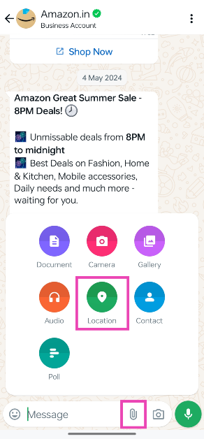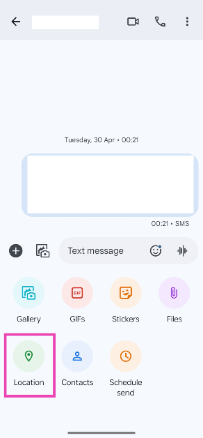Étape 2 :Frappez leicône de pièce jointedans la boîte de message et sélectionnezEmplacement.