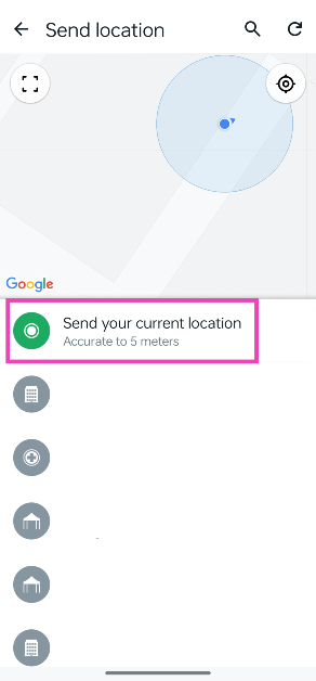Étape 4 :Appuyez surEnvoyer votre position actuelle. Si vous déménagez, appuyez surPartager la position en direct.