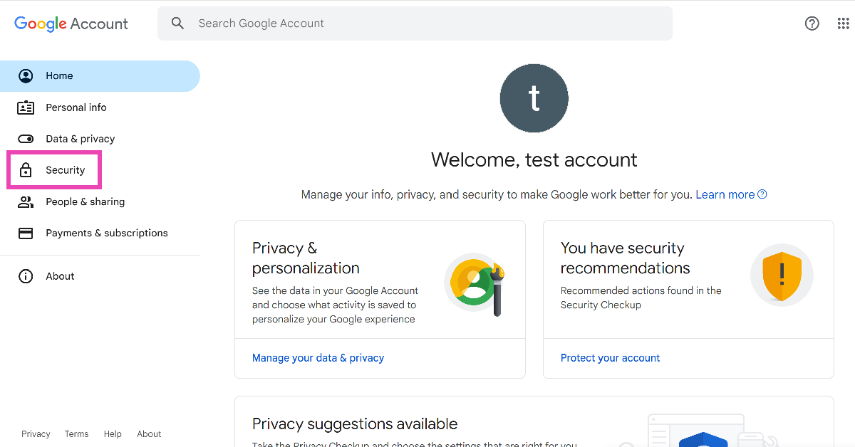 Étape 1 :Accédez à votre compte Googlepage de gestion.