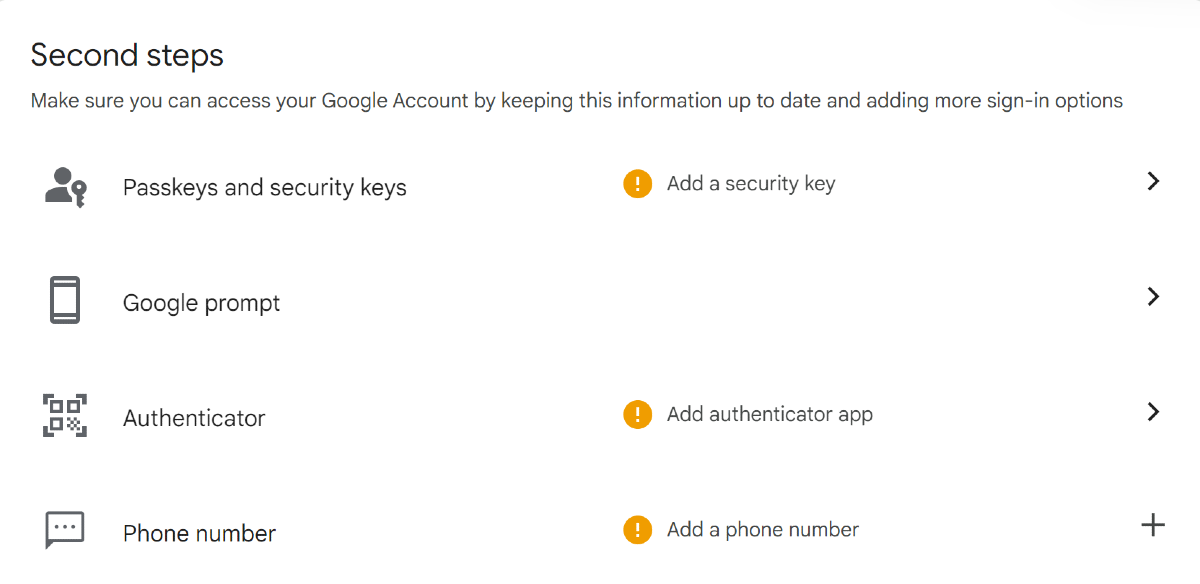 Étape 5 :Choisissez comment vous souhaitezvérifiervotre tentative de connexion. Google vous propose les options suivantes : clés d'authentification et clés de sécurité, invite Google sur votre appareil principal, applications d'authentification et numéro de téléphone.