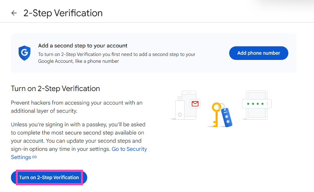 Étape 6 :Cliquez surActiver la vérification en deux étapes.