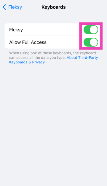 Étape 3 :Allumez leinterrupteur à basculepour Fleksy et permettez-leaccès complet.