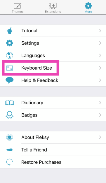 Étape 7 :Appuyez surTaille du clavier.