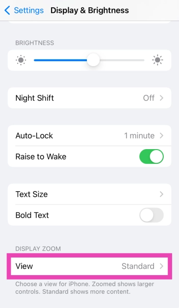 Étape 2 :Faites défiler vers le bas et sélectionnezVoirsousZoom d'affichage.