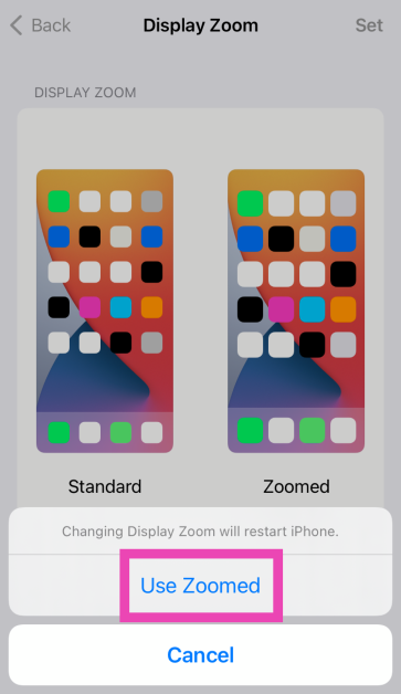 Étape 4 :Appuyez surUtiliser le zoomdans la boîte contextuelle.
