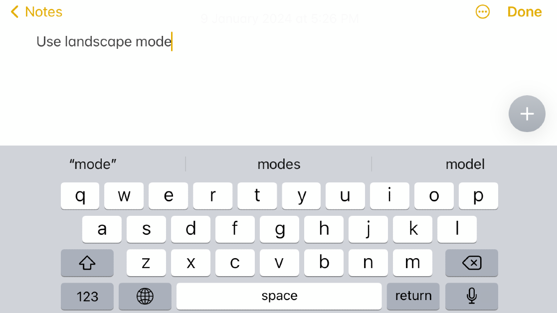 L'utilisation de votre iPhone en mode paysage force le clavier à l'écran à s'aligner sur toute la longueur de l'appareil, l'agrandissant ainsi. Le seul inconvénient est qu’une fois que le clavier apparaîtra à l’écran, il couvrira la majeure partie de l’écran. C'est très bien si vous souhaitez répondre à un texte rapide ou saisir rapidement une requête de recherche, mais vous ne trouverez peut-être pas cela idéal pour les discussions qui se déroulent rapidement. Pour passer en mode paysage sur votre iPhone, accédez au Centre de contrôle et désactivez le verrouillage d'orientation. Tenez votre iPhone horizontalement pour agrandir le clavier.