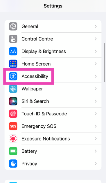 Étape 1 :Aller àParamètreset sélectionnezAccessibilité.