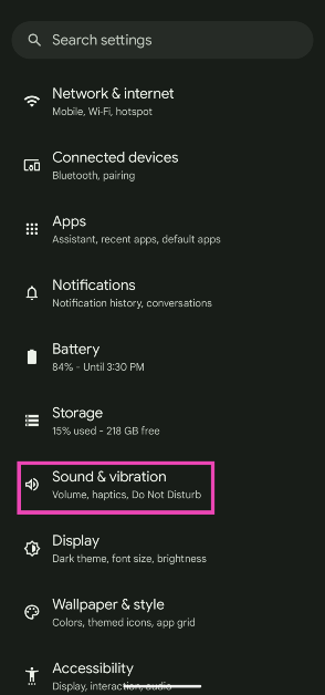 Étape 1 :Aller àParamètreset sélectionnezSon et vibrations.