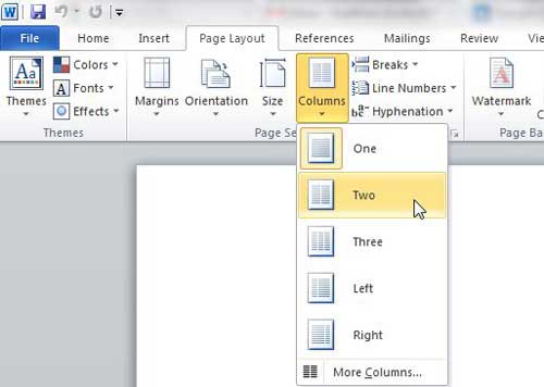 Cliquez sur lePausesmenu déroulant dans leMise en pagesection du ruban, puis cliquez sur l'icôneColonneoption.