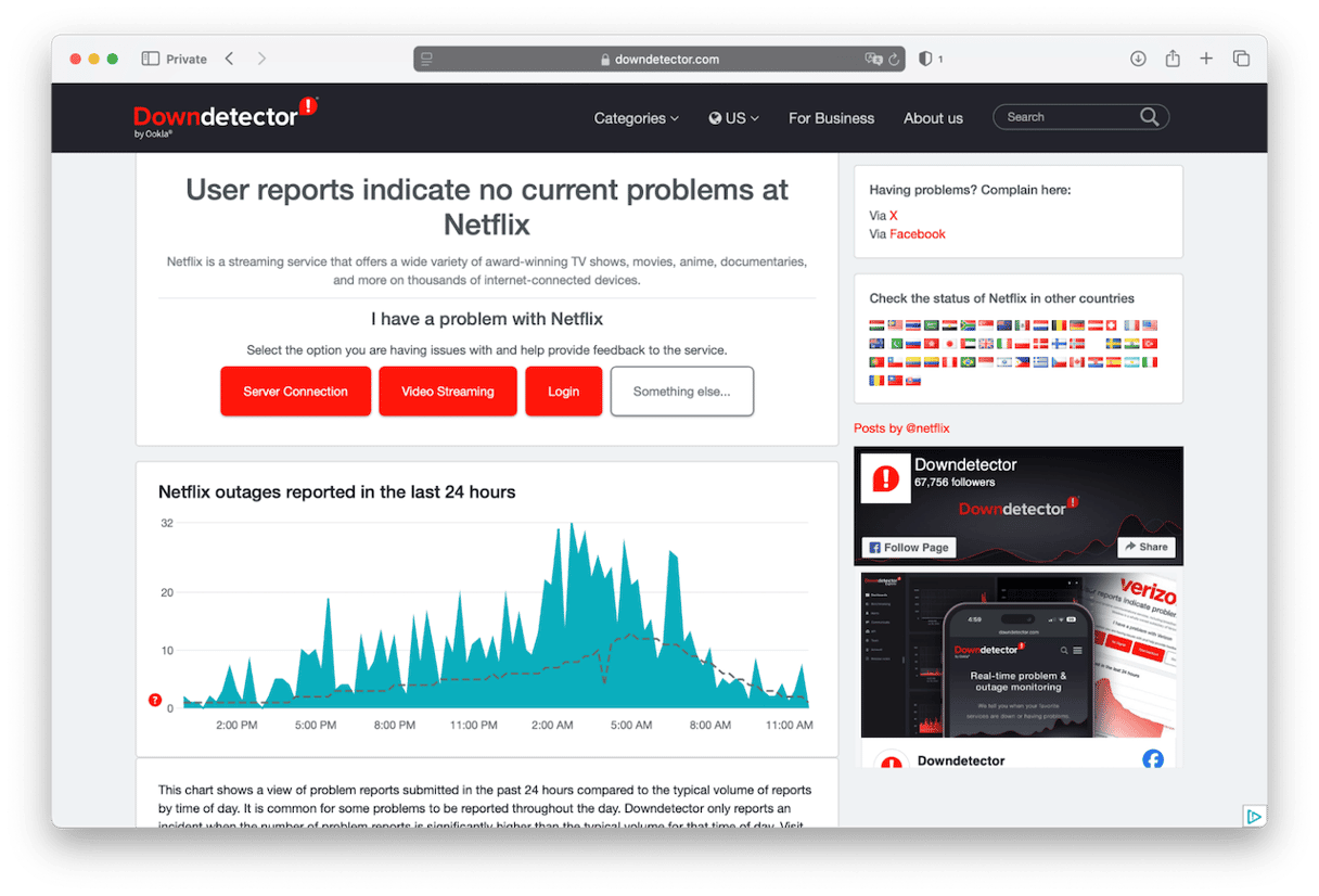 - Accédez à Downdetector et vérifiez Netflix pour voir si d'autres ont signalé un problème.