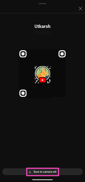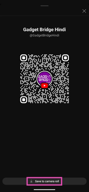 Étape 5 :Le code QR de votre chaîne apparaîtra sur la page suivante. Appuyez surEnregistrer dans la pellicule.