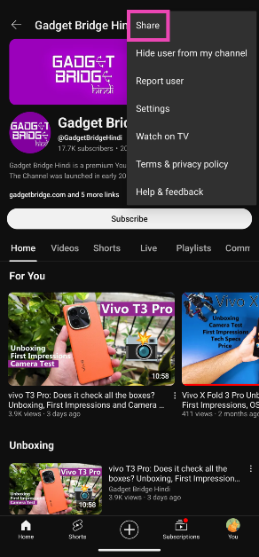 Étape 1 : Lancementl'application YouTube et accédez à la chaîne que vous souhaitez partager.