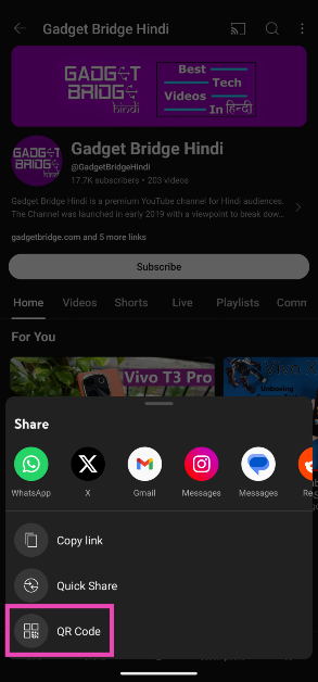 YouTube vous permet non seulement de générer un code QR pour votre chaîne mais également pour d'autres chaînes de la plateforme. Cela fait du partage de vos créateurs préférés avec vos amis un processus très simple et transparent. Cette fonctionnalité n'est disponible que pour les utilisateurs d'applications sur les plateformes Android et iOS.