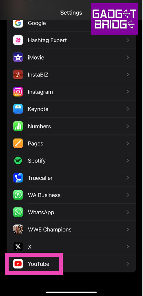 Étape 1 :Aller àParamètreset sélectionnezYouTube.