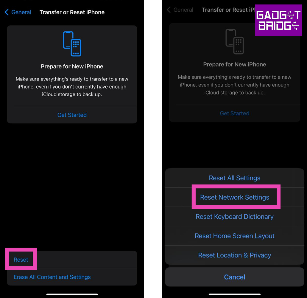 Étape 3 :SélectionnerRéinitialisersuivi deRéinitialiser les paramètres réseau.