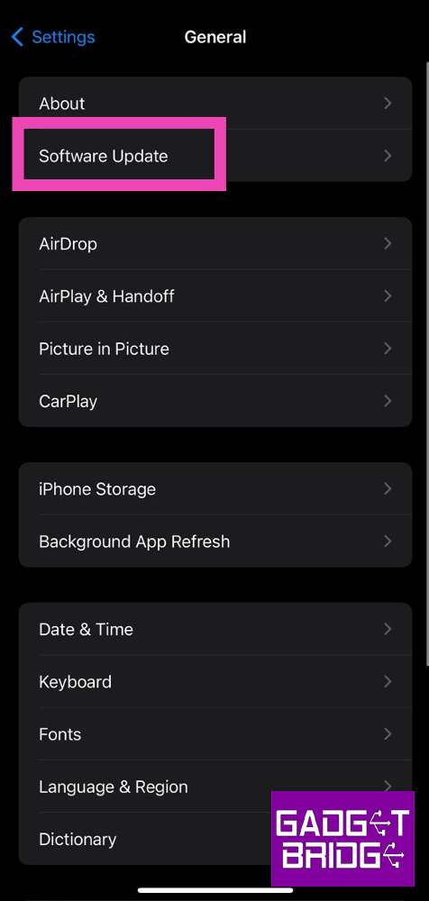 Étape 3 :SélectionnerMise à jour du logiciel.